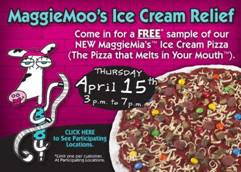 Maggie Moo's is offering us some "E-cone-omic" relief by giving everyone a slice of FREE ice cream cake on Tax Day (April 15th). Participating stores will be giving away a slice of this new product between 3pm and 7pm on the 15th.